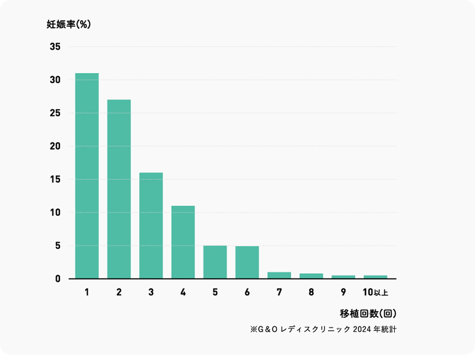 以下のグラフはART治療で妊娠した方を対象に、何回目の胚移植で妊娠成立したのかを調査したデータです。